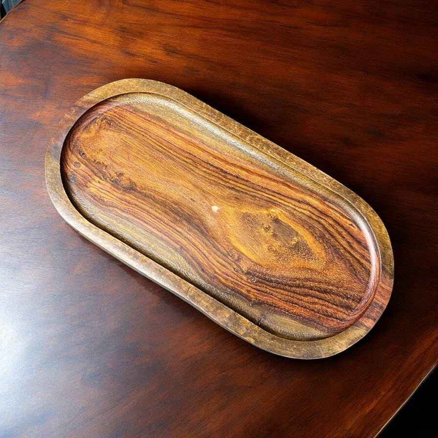Keep your timepieces safe and stylishly stored in our handcrafted wooden watch boxes. These boxes are designed with compartments to securely hold multiple watches, making them an ideal choice for watch enthusiasts. Serve your guests in style with our range of wooden trays. Perfect for any occasion, these trays are durable and beautifully designed, making them a versatile addition to your kitchen or dining room.